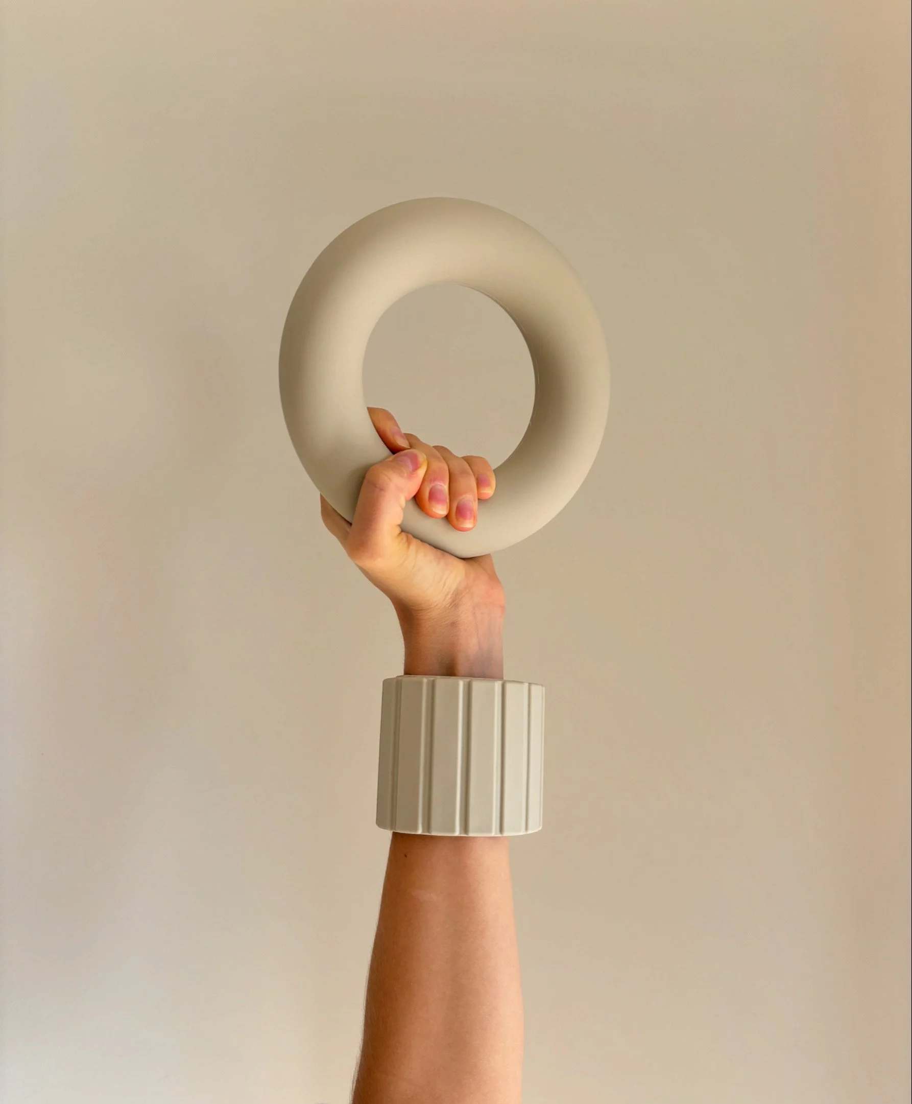 A set of two designer weight rings for balanced, full-body movement — made to feel good in your hands and look beautiful in your space.